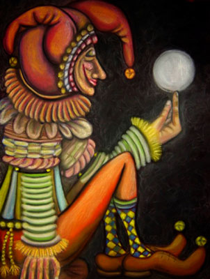 A ‘holy fool’ is a person who sees what’s really going on in society and has the audacity to say it, but only in a kind of code. If there’s a crooked government, the holy fool will maybe perform a weird pantomime or tell a story, one that gets everyone to laugh at first; sooner or later, the more perceptive members of the …audience will recognize in the fool’s antics a hidden message. Stating this message in code is protection against the wrath of the authorities.”[1]
