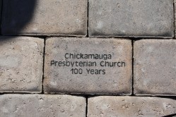 Today marked the first of those events. A sizeable crowd gathered this weekend to celebrate the 100 year anniversary of Chickamauga Presbyterian Church. Festivities included an open house and music recital on Saturday and a hymn sing, worship service and celebration dinner today. Former pastors, George Long, Ken Terrell, William Mills, Edward Langham and Chuck Taber participated in the service, along with current pastor Bridget Waddell and both the adult and children’s choirs. Chickamauga’s church historian, Janice Maybery Westbrook put together a wonderful written and pictorial history of the congregation and set up a special ‘heritage room’ with many mementos from the 100 years of ministry and service. (Copies will be sent to Columbia Seminary and to the Historical Society in Philadelphia for preservation.) And a special anthem, “Our Mission is Jesus,” was written by choir director, Wilma Dalrymple Darnell for the occasion.